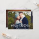 Carte de Noël photo avec écriture Modern Brush - Fond en bois rustique