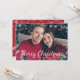 Cette carte de vacances festive présente un cadre recouvert de flocons blancs. Le dos comprend la même oeuvre d'art avec arrière - plan rouge.