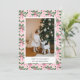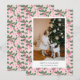 Carte de vacances avec un joli fond de papier peint rose et vert pastel avec une photo de famille associée à un vœu de vacances et votre nom et année dans une police sans serif.