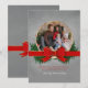 Cette carte de vacances présente une fenêtre photo ronde sur un fond gris acier. Elle est agrémentée de verts de pin et nouée d'un grand nœud rouge. (<a href="http://www.freepik.com/free-photo/family-sitting-on-the-floor-with-brown-gifts-and-a-christmas-tree_982520.htm">Conçu par Freepik</a>) (<a href='http://www.freepik.com/free-vector/christmas-sale-background-with-red-ribbon_989469.htm'>Conçu par Freepik</a>). <br/><br/>La carte est facile à personnaliser avec votre texte, police, couleur de police, options de forme de papier et choix entre six types de papier.<br/><br/>Pas exactement ce que vous cherchez ? Tous nos produits peuvent être conçus sur mesure pour répondre à vos besoins sans frais supplémentaires.<br/><br/>Contactez-nous simplement à heartfelthelper@gmail.com<br/><br/>Produits coordonnés disponibles : demandez-nous !