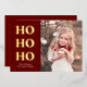 Cette simple carte de vacances mignonne comprend le texte qui ho dans une police de style rétro moderne. Il y a un endroit sur le devant pour que vous mettiez un petit message et votre nom. Le dos est orné d'une grande photo. Autres couleurs et mises en page disponibles dans notre boutique zazzle - pour une personnalisation supplémentaire envoyez-nous un message!