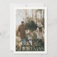 JOYEUX NOËL | Carte de vœux photo. Typographie minimaliste moderne en beige doux avec dos de couleur vert foncé.