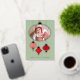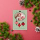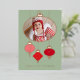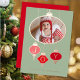 Une simple carte de Noël moderne avec des ornements rouges JOY sur un fond vert mousse de mer. De véritables accents de feuille d'or métallisé ornent les ornements, le texte et la photographie de votre nouveau membre de la famille avec une brillance luxueuse pour partager ces précieux souvenirs.