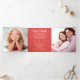 La couverture de cette carte de voeux triplée de vacances a une image rétro délicieuse de trois cerfs en berne en silhouette bleue debout parmi les saints rouges et verts. La bordure supérieure sur le devant est une répétition du saint et de la verdure. Au centre se trouve le texte rouge vif qui dit "Joyeux Noël", avec votre texte personnalisé ci-dessous. L'intérieur de la carte a un modèle photo pour votre photo personnalisée sur la droite et un à gauche. Le milieu a plusieurs champs de texte personnalisés sur un arrière - plan rouge correspondant, et avec un séparateur de flocon blanc. Le dos de la carte a un autre segment modèle photo, et une merveilleuse image rétro de Père Noël et son traîneau, avec plus de champs de texte. C'est amusant de fêter Noël à l'ancienne avec des images rétro !