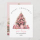 Immergez vos salutations de vacances dans un mélange de chaleur festive avec notre carte Pink Watercolor Christmas Tree. Embelli de touches douces de teintes roses, ce délicieux sapin de Noël rayonne de joie. Améliorez le lien personnel en customisant la carte avec votre nom de famille, en la transformant en un memento unique qui incarne l'esprit de convivialité.