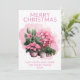 Pink Poinsettia pour la carte de Noël en bleu pour un accueil festif de vacances à la famille et les amis.