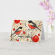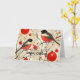 Carte de Noël personnalisable représentant deux rouges-gorges perchés sur des branches avec des ornements rouges pendus.