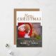 Carte de Noël rustique avec bois sombre et pin. Carte de vacances festive avec Joyeuses Fêtes, votre vœu, nom de famille et l'année dans un script moderne doré et blanc - personnalisez avec votre texte. Le fond est blanc et texture de bois sombre. Le design comporte des feuilles de pin vertes. Insérez votre photo de famille préférée dans le modèle et créez une carte de Noël spéciale pour votre famille et vos amis.