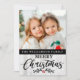 Modern Rustic Wood Family Photo Christmas Card - Quelle belle façon d'envoyer vos voeux de vacances cette saison. Votre photo préférée est présentée sur cette carte postale de Noël très spéciale et la carte est personnalisée avec votre nom de famille et Joyeux Noël dans une jolie typographie script moderne, et est accentuée avec du bois. Le dos de la carte est recouvert de buffle rouge. La carte de Noël fait partie d'une collection. Conçu par Beverly Bainbridge Magnolia & Thistle