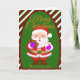 Cette carte de Noël dessinée à la main représente un joyeux Santa avec des cookies et du cacao, encadré de rayures de cannes à sucre et de couleurs de fêtes chaleureuses. Personnalisez le bas avec le nom d'une famille ou d'une entreprise pour la rendre unique. Idéal pour les cadeaux pour adolescents ou pour les envois postaux de Noël avec personnalité.