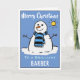 Dessin de bonhomme de neige amusant sur une carte de Noël festive. Carte de Noël pour un Barber.