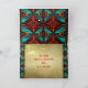 Personnalisez cette carte de vœux de Noël sud-ouest "unique" ! Elle représente un Kokopelli sud-ouest jouant de la flûte avec des notes de musique sur un fond de Noël doré, entouré de bordures turquoise, orange et noires et les mots inspirants..."Paix sur Terre" !