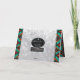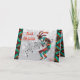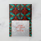 Personnalisez cette carte de Noël Southwest Kokopelli "unique" ! Elle présente un Kokopelli jouant de la flûte avec des notes de musique sur un fond de Noël argenté avec des flocons de neige, entouré de bordures turquoise, orange et noires et les mots inspirants..."Paix sur Terre" !