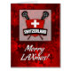 Logo de crosse suisse sur un arrière - plan de Noël rouge profond. Fêtes de crosse sur mesure / Carte de Noël avec un design original Game Face Gear. Consultez mon magasin pour de nombreux autres modèles avec un arrière - plan saisonnier! Idéal pour toute votre famille et vos amis sportifs fous.