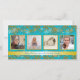 bleu turquoise et or, quatre cartes de Noël photo. Cartes de fin de année horizontaux et lumineux pour une grande famille de partager de nombreuses photos avec des proches. Le texte personnalisé sous les photos est sur une bande d'or. Toute photo de taille sera centrée dans chaque modèle. Les enveloppes sont incluses.