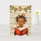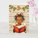 Carte de Noël vintage afro-américaine. Jeune fille afro-américaine chantant dans la chorale devant une feuille de musique. Ajoutez votre propre vers pour la rendre plus personnelle.