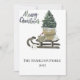 Joyeux Noël! Envoyez des voeux de vacances, des voeux chauds, des cartes de Noël avec un message à la famille et aux amis avec cette carte de vacances simple mais attachante. Il présente des illustrations aquarelle d'un traîneau et d'un sapin de Noël Personnalisez cette carte en ajoutant des noms, une année et un message. Rouge et vert plaid à l'arrière. Choisissez parmi un large éventail de types de papier.