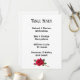 tige de rose rouge, idée de carte de siège de table. Siégez les invités mariages en listant les noms sur une carte de numéro de table unique. Celui-ci a le même texte et la même image de part et d'autre. Cartes blanches avec texte noir et numéro de table écrites en haut. Une seule tige rouge orne le fond de la carte. Le texte pour les noms est une police imprimée et en gras et s'aligne sur le haut. Ajoutez des espaces pour prendre en charge tous les noms. Double-les, comme M. et Mme, ou listez séparément. Cet exemple peut accueillir huit personnes par table.
