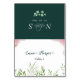 Cette carte de nom d'invité de table de mariage à l'aquarelle de verdure dorée est idéale pour une célébration d'inspiration boho. Avec des feuilles d'eucalyptus et des feuillages verts sombres et riches à l'aquarelle, le design allie une élégance rustique à une ambiance forestière moderne.