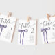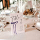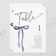 Cartes de numéro de table pourpre pour une Fête des mariées à thème "Elle noue le noeud" avec une touche gothique. Invitation correspondante, cartes de boîtier et panneaux sont également disponibles dans cette collection.