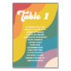 Décorez vos tables de mariage avec cette carte moderne et élégante, avec un arc-en-ciel groovy et un texte personnalisé de votre choix. Ajoutez facilement vos propres détails en cliquant sur l'option "personnaliser".
