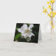 Sur ce carte pour notes est une photo prise par Jackie Locke dans le jardin. La photographie comporte les fleurs blanches pures d'un buisson de gardénia.