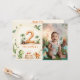 Créez un précieux souvenir avec cette carte de note de capsule temporelle sur le thème des dinosaures, conçue pour capturer des messages spéciaux et des souvenirs pour le deuxième anniversaire d'un tout-petit ! Avec un design aquarelle charmant, le devant comprend un grand chiffre "2" dans une texture préhistorique, des bébés dinosaures joueurs et un espace photo dédié pour une touche personnelle.