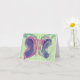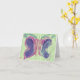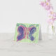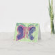 Carte pour notes vide avec une beaux, posés aquarelle d'un papillon dans les pourpres, bleu et turquoise sur l'avant plan. Art par Maeve et Charlotte.