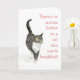 Un carte pour notes humoristique avec un chat tabby gris qui veut son petit-déjeuner sur une aquarelle de Judy Adamson. Parfait pour les amateurs de chat !