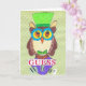 Ce hibou folâtre un bowtie élégant et un casquette supérieur, et est intérieur vide pour vous permettre d'envoyer votre propre salutation !