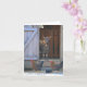 Cette carte de notes présente une chèvre debout dans la porte de sa maison pendant que ses amis poulets passent. Idéal pour la chèvre et les amoureux des animaux.