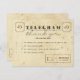 Note de Merci pour coordonner avec des économies de "télégramme" la date et faire-part de mariage. Frontside inclut l'espace pour des mots personnalisés. Images de mots actuels 4" cases à cocher. Tous les mots peuvent être ajustés, s'ajoutent simplement en votre texte choisi ! L'espace pour la note manuscrite personnelle sur l'inverse. Exige une enveloppe pour l'expédition.