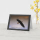 À travers la carte de note de milles dépeignant un aigle chauve en vol
