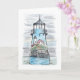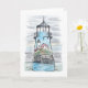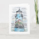 Carte de notes illustrant l'illustration du phare Warwick dans une combinaison d'aquarelle et de stylo et d'encre à l'avant. Ce phare est situé à Warwick, RI. L'intérieur est vide et peut être customisé. Le dos a une icône "I love RI" avec un phare pour le "I". "Phare de Warwick" est écrit en dessous et est également personnalisable. Il s'agit d'une carte de billet pour tous ceux qui aiment Rhode Island et ses phares.