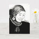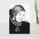 Vielle dame indienne avec les cheveux attachés sur le dos et elle porte un collier et une oreille, l'image est illustrée en stylo noir et encre.