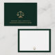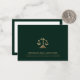 Communiquez avec vos clients en utilisant ces élégantes cartes de notes intemporelles avec un logo de l'échelle de justice or brossé sur un riche arrière - plan vert émeraude foncé, idéal pour les avocats et les cabinets d'avocats qui souhaitent transmettre le professionnalisme avec chaque message.