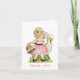 Une petite fille douce, vêtue d'une robe rose et d'un bonnet de Pâques, porte un panier d'oeufs colorés et embrasse une oie blanche. Salutation : Merci. Image de Vintage Pâques Clipart réalisée par Whitney.