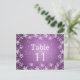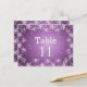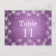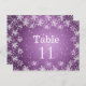 Des flocons de neige violets et blancs sur une étoile violette scintillante et un arrière - plan de neige Carte numéro de tableau. Vous pouvez modifier le numéro de table selon vos besoins (2, 3...7...10...) - chaque fois une nouvelle carte, et ajouter toutes ces cartes à votre panier.