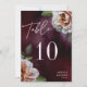 De belles fleurs peintes sur un fond sombre peint associées à une typographie élégante donnent à cette carte de numéro de table de mariage un style sombre, mystérieux et romantique. Modifiez simplement le modèle avec votre nom, date, numéros de table et choisissez les options souhaitées. Ce design est recto-verso pour qu'il puisse être affiché sur un présentoir si vous le souhaitez. Nous recommandons d'utiliser les options de papier mat ou double épaisseur pour les numéros de table. Les articles de mariage coordonnés sont disponibles dans notre boutique ou voir la collection de designs...