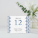 Carte de numéro de table Arabesque bleu marine