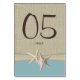Carte de numéro de table bleue Starfish et Burlap