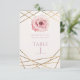 Carte de numéro de table de fête florale rose et o