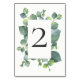 Carte de numéro de table de l'Eucalyptus chic mode