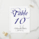 Carte de numéro de table de mariage personnalisée avec monogramme et police de caractères cursive bleue marine. Conception d'Elke Clarke ©2011. Personnalisez avec vos informations personnelles, date de mariage et couleurs. Commandez-en une par table avec chaque numéro de table, mais bénéficiez toujours de la remise de quantité pour le nombre total commandé.
