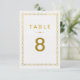 Carte de numéro de table de mariage Art Déco dorée
