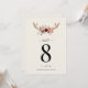 Guidez vos invités avec cette carte de numéro de table de mariage rustique présentant des bois de cerf élégants et des tons terreux doux — parfait pour un mariage champêtre, de style country ou d'automne. Conçue pour coordonner avec votre thème de mariage rustique avec bois de cerf, ce numéro de table ajoute une touche naturelle et raffinée à votre décoration de table de réception.