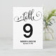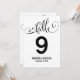Carte de numéro de table de mariage avec écriture