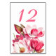 Elégante carte de numéro de table de réception de style plat faite en blanc, avec des oeuvres vintages de magnolias roses. Le numéro de table rose personnalisé est prêt à être personnalisé pour chaque table à votre réception. Des produits mariages correspondants sont disponibles.