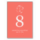 Cette élégante carte de numéro de table de mariage comporte un monogramme entouré d'art à ligne florale avec les initiales, noms et date de mariage de la mariée et du marié en blanc sur un arrière - plan orange. Utilisez les champs modèle pour ajouter vos détails personnalisés. Cliquez sur "Modifier à l'aide de l'outil de conception" pour modifier les couleurs et les polices. Pour voir d'autres idées de décoration de table mariages comme cette visite www.zazzle.com/dotellabelle