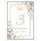 Carte de numéro de table de Mariage rose Roses